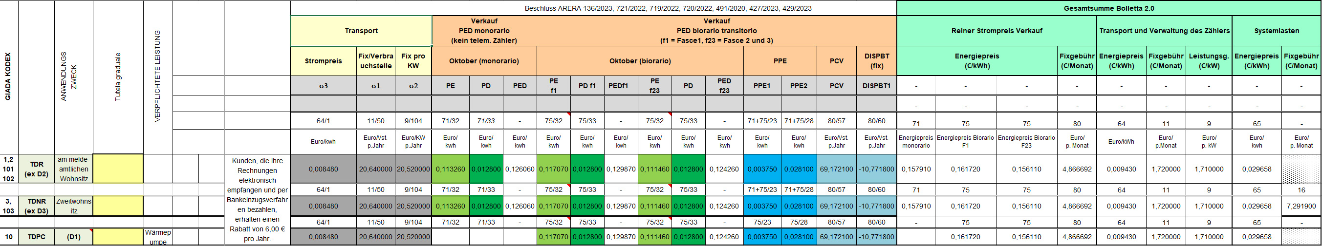 Haushaltsstrom Tarife - Tariffe A Uso domestico
