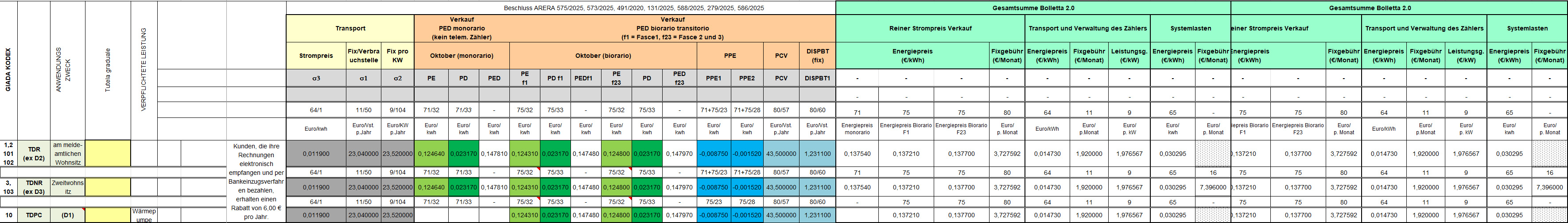 Haushaltsstrom Tarife - Tariffe A Uso domestico 01.01.26 - 31.03.26